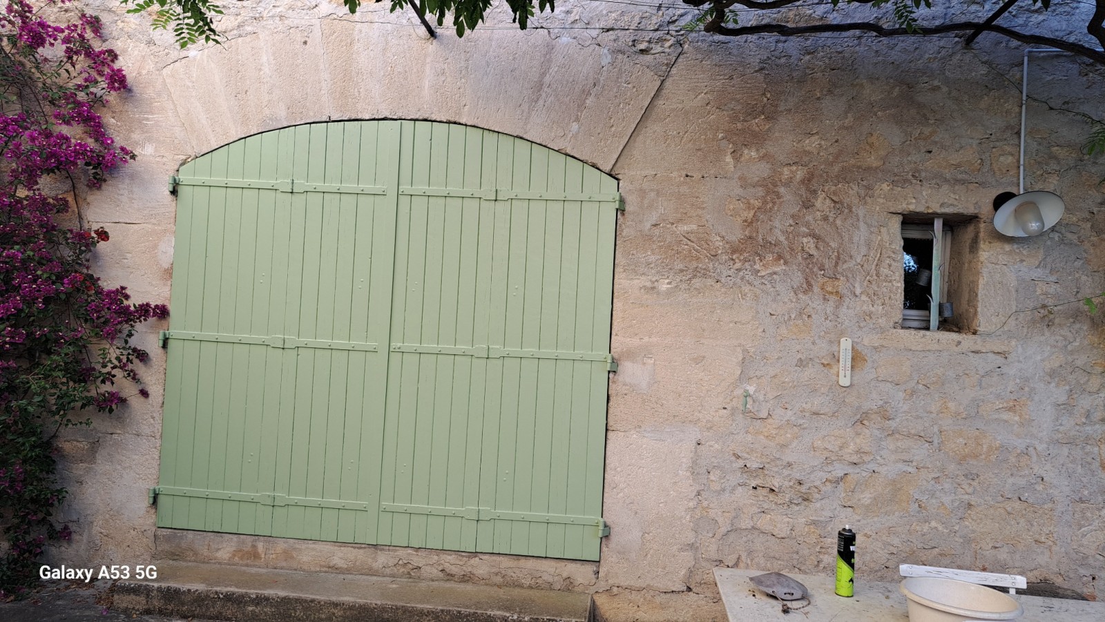Une fois poncés, les volets ont été recouverts d’une peinture de qualité, spécialement formulée pour résister aux agressions extérieures. Le choix des teintes s’est fait en accord avec le propriétaire, afin de garantir une harmonie parfaite avec la façade.