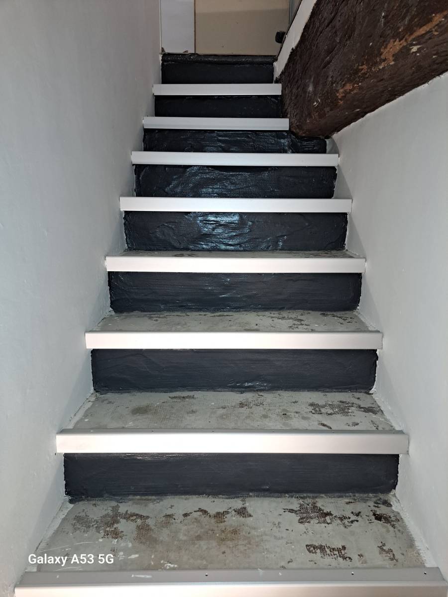 Préparation de l’escalier : Nettoyage, ponçage et réparation des éventuelles imperfections.